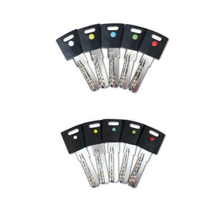 - Odgovarajući ključevi svakog cilindra uvijek sadrže 5 istih boja pribadača: plava (MOD)