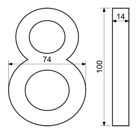 Aluminijski broj u "3D" dizajnu s brušenom površinom.