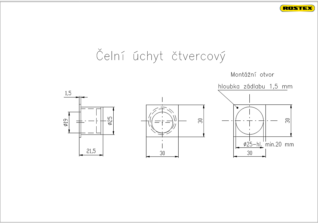 Kvadratna prednja ručka ROSTEX (mat nehrđajući čelik)