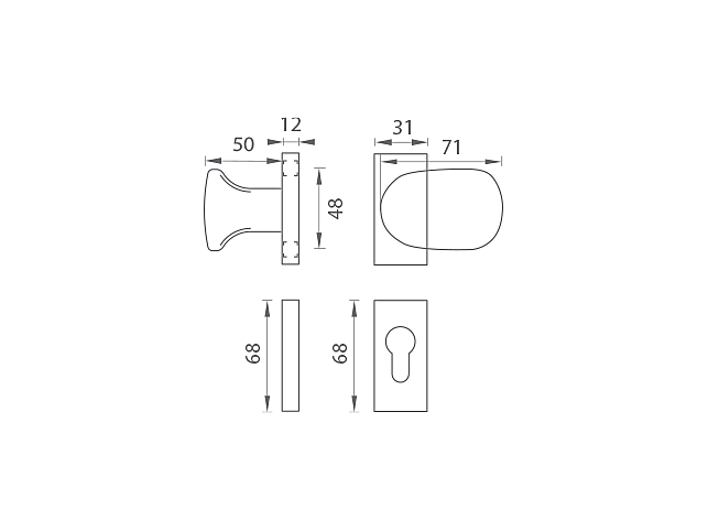 Ručka za ručke sadrži opružni mehanizam i nudi se u obliku fiksne ručke (jedan komad) ili rotirajuće ručke (jedan komad).