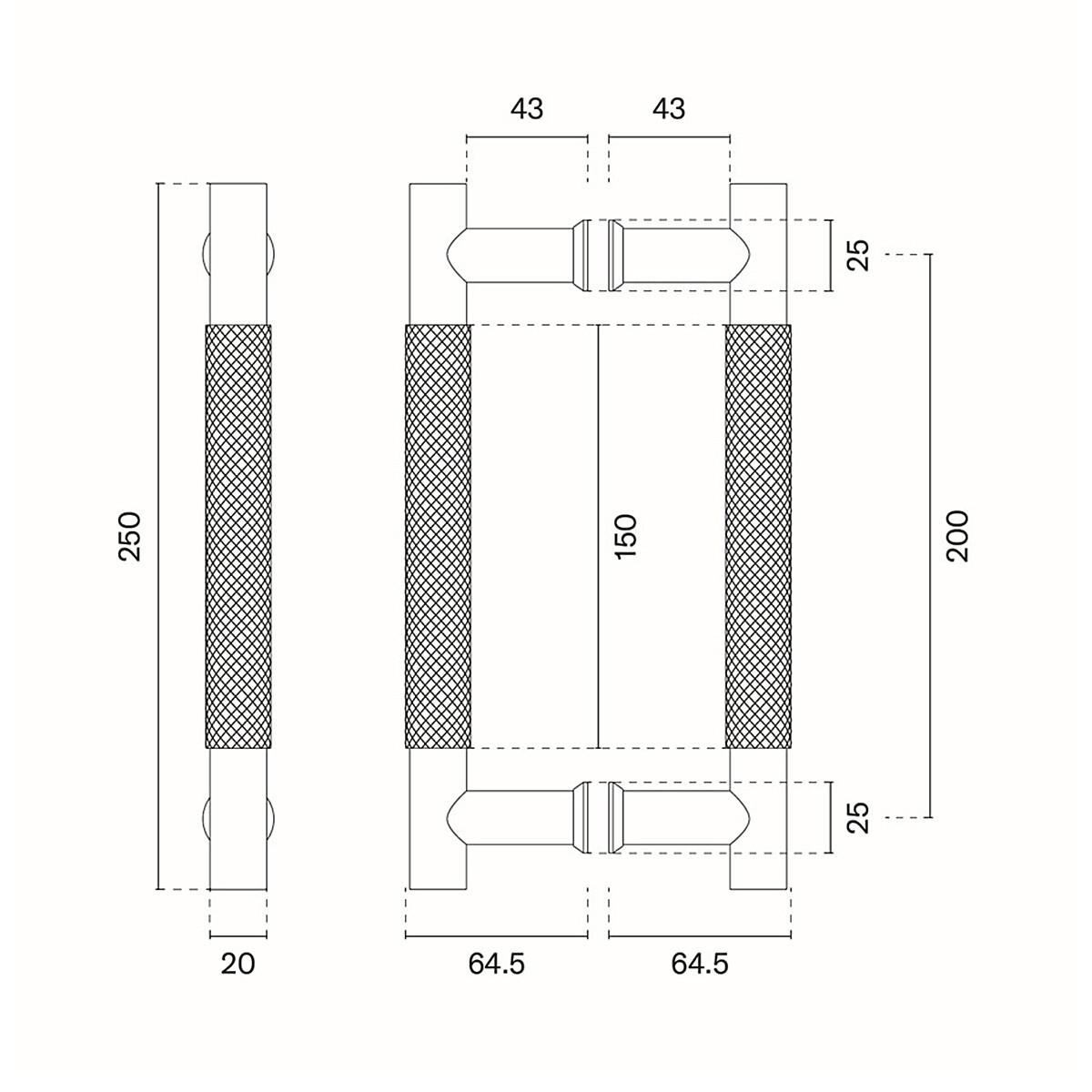 Kvaka za vrata MP SH 1770 - par (OLS - Brušeni mesing) - Duljina: 250 mm200 mmØ 20 mm