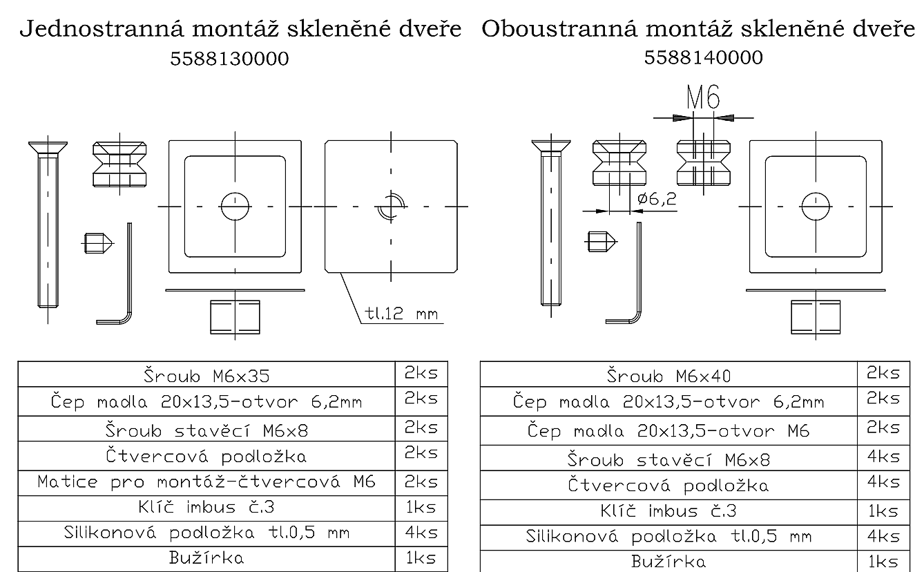 Kvaka za jednostranu montažu namijenjena je za montažu na krilo vrata M6 vijcima s unutarnjim šesterokutom.