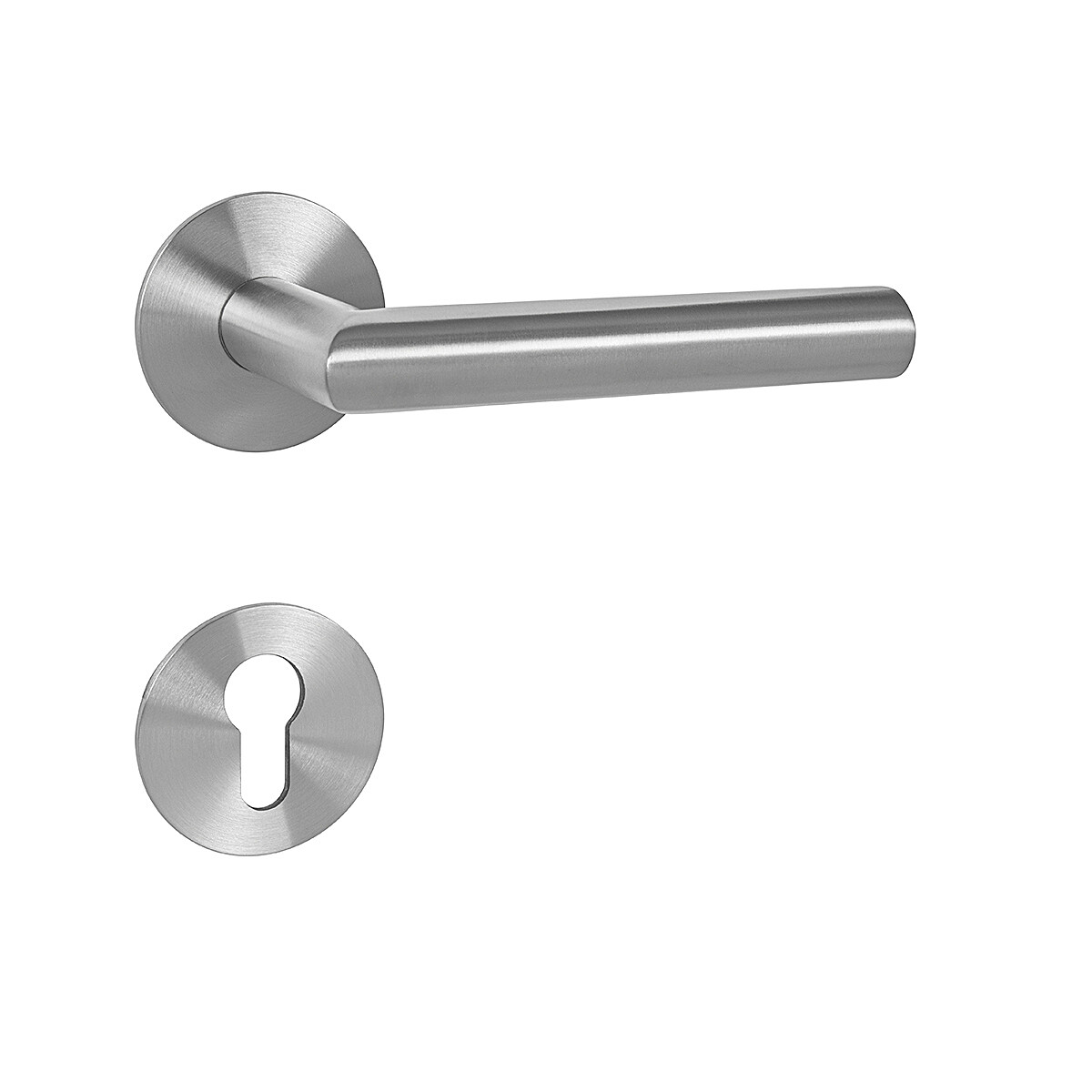 Rozetna kvaka na unutarnjim vratima s magnetnom ravnom okruglom rozetom izrađena je od kvalitetnog inoxa poznatijeg kao inox i površinski je obrađena. Rozeta ima promjer 55 mm i debljinu samo 3 mm. Stabilan je u boji i otporan na habanje. Armatura je ispitana prema normi EN 1906 na 200.000 ciklusa.