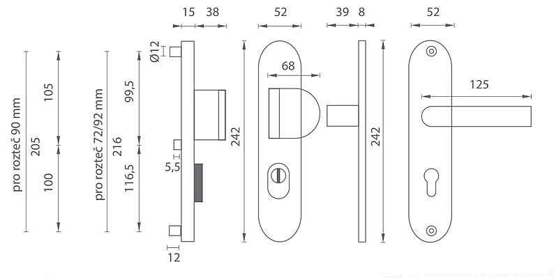 | Razmak | 72 mm, 90 mm, 92 mm |