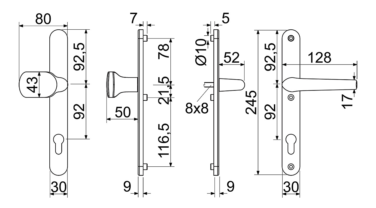 • RHD.005 - 72–92 mm - nakon skraćivanja kutnika i vijaka od debljine vrata 40 mm