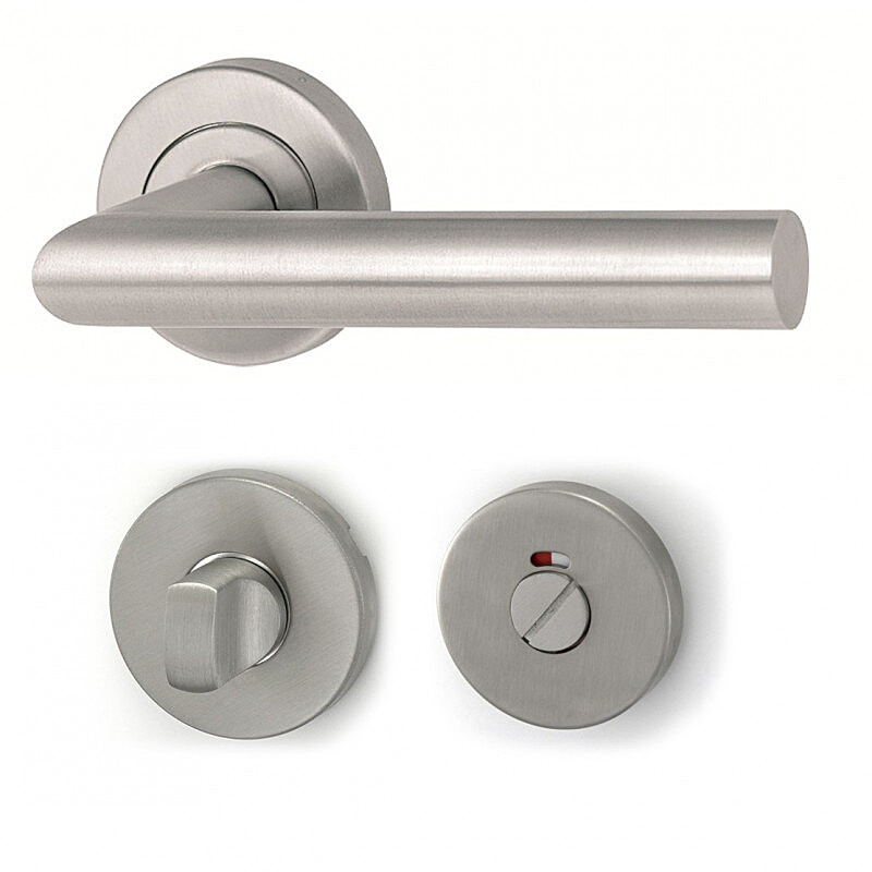 Ovaj okov za vrata dostupan je u izvedbi za obični ključ (BB), cilindrični uložak (PZ) ili s WC bravom s indikatorom zaključavanja za kupaonicu ili WC.