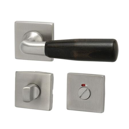 Ovaj okov za vrata dostupan je u izvedbi s četvrtastom rozetom za obični ključ (BB), cilindarski uložak (PZ) ili s WC bravom s indikatorom zaključavanja za kupaonicu ili wc s drvenom ručkom u bijeloj boji. drvo, prirodno drvo, trešnja, mahagonij, bagrem ili ebanovina.