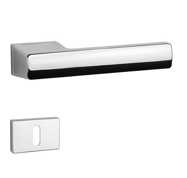 Rozetna kvaka za sobna vrata sa pravokutnom rozetom izrađena je od visokokvalitetnog materijala - zamaka i površinski je obrađena. Rozeta je dimenzija 52 x 33 mm i debljine je samo 7 mm. Minimalistički dizajn rozete s visokom stabilnošću ručke na vratima djeluje suptilno ostavljajući prostora da se dizajn same ručke istakne.