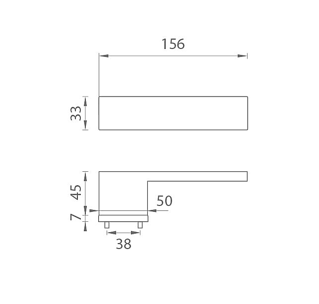 Rozetna kvaka za sobna vrata sa pravokutnom rozetom izrađena je od visokokvalitetnog materijala - zamaka i površinski je obrađena. Rozeta je dimenzija 52 x 33 mm i debljine je samo 7 mm. Minimalistički dizajn rozete s visokom stabilnošću kvake na vratima djeluje suptilno ostavljajući prostora da se sama kvaka istakne.