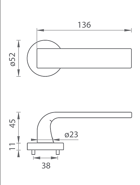 Rozetna kvaka na unutarnjim vratima sa okruglom rozetom izrađena je od visokokvalitetnog materijala - zamaka i površinski je obrađena. Rozeta je promjera 52 mm i standardne debljine 11 mm.