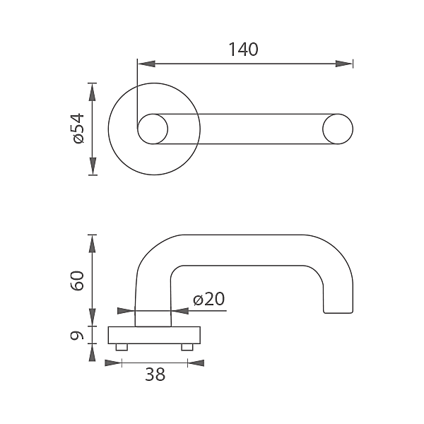 Rozeta ručka za unutarnja vrata s okruglom rozetom izrađenom od visokokvalitetnog nehrđajućeg čelika, poznatog kao nehrđajući čelik, i površinski je obrađena. Rozeta ima promjer 54 mm i debljinu 9 mm. Postojane je boje i otporna na habanje. Okov je ispitan prema normi ČSN EN 1906: 2012 na 200 000 ciklusa.