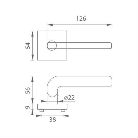 Rozetna kvaka za sobna vrata s četvrtastom rozetom izrađena je od visokokvalitetnog nehrđajućeg čelika poznatog kao inox te je površinski obrađena. Rozeta je dimenzija 54 mm x 54 mm i debljine 9 mm. Stabilan je u boji i otporan na habanje. Armatura je ispitana prema normi ČSN EN 1906:2012 na 200.000 ciklusa.