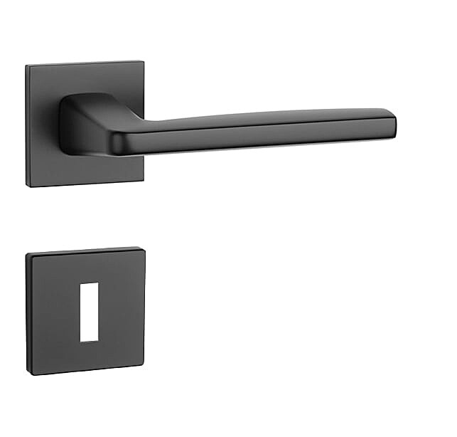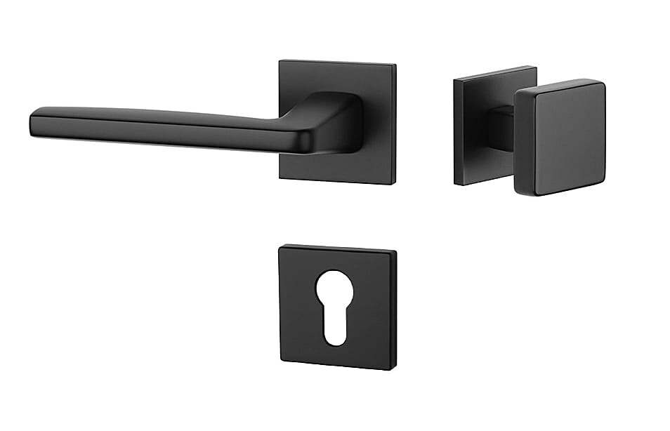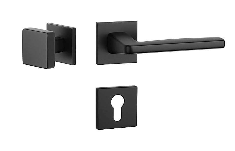 Rozetna kvaka za sobna vrata s četvrtastom rozetom izrađena je od visokokvalitetnog materijala - zamaka i površinski je obrađena. Rozeta je dimenzija 52x52 mm i debljine je samo 7 mm. Minimalistički dizajn rozete s visokom stabilnošću ručke na vratima djeluje suptilno ostavljajući prostora da se dizajn same ručke istakne.