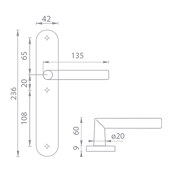 Štit kvaka na unutarnjim vratima s dugim ovalnim štitom izrađena je od visokokvalitetnog nehrđajućeg čelika, poznatog kao inox, te je površinski obrađena. Dugi ovalni štit ima dimenzije 42 mm x 236 mm.