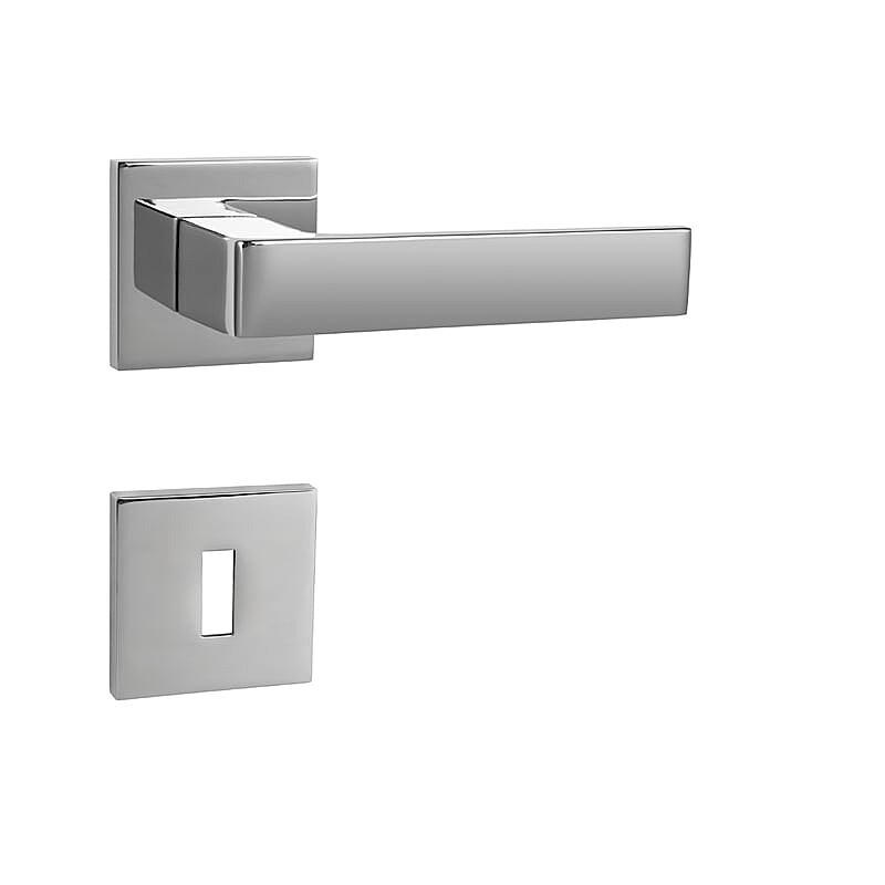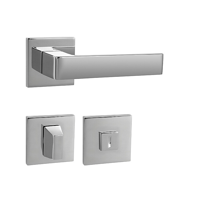 Rozetna kvaka za sobna vrata s četvrtastom rozetom izrađena je od visokokvalitetnog materijala - zamaka i površinski je obrađena. Rozeta je dimenzija 53 mm x 53 mm i debljine 6 mm.