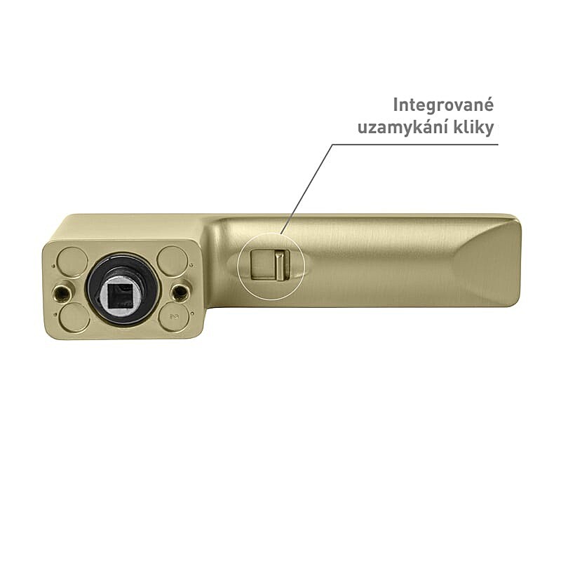 Ručka se ističe svojim bezvremenskim dizajnom i pouzdanom izradom. Mehanizam sadrži povratnu oprugu koja osigurava udobno rukovanje, a izbočine na rozeti sprječavaju njezino okretanje. Vijci koji prolaze kroz cijelu debljinu vrata jamče čvrsto i stabilno pričvršćivanje okova.