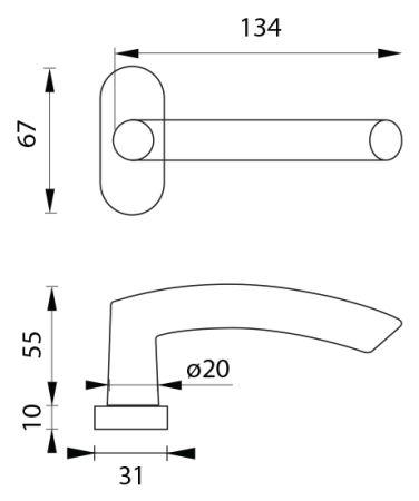 Rozetna ručka s ovalnom uskom rozetom za vrata uskog profila (npr. vrtna vrata i vrata za ograde) izrađena je od visokokvalitetnog nehrđajućeg čelika, poznatog kao inox, te je površinski obrađena. Pokretni mehanizam sadrži povratnu oprugu.