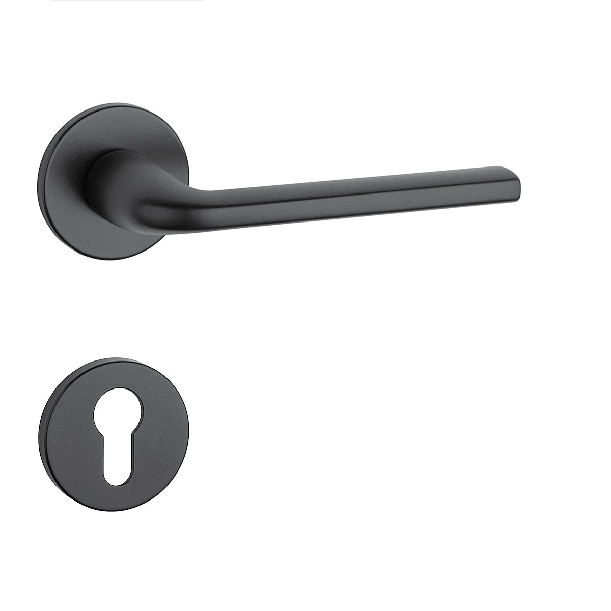 Rozetna kvaka za sobna vrata sa okruglom rozetom izrađena je od visokokvalitetnog materijala - zamaka i površinski je obrađena. Rozeta ima promjer 52 mm i debljinu od samo 7 mm. Minimalistički dizajn rozete s visokom stabilnošću ručke na vratima djeluje suptilno ostavljajući prostora da se dizajn same ručke istakne.