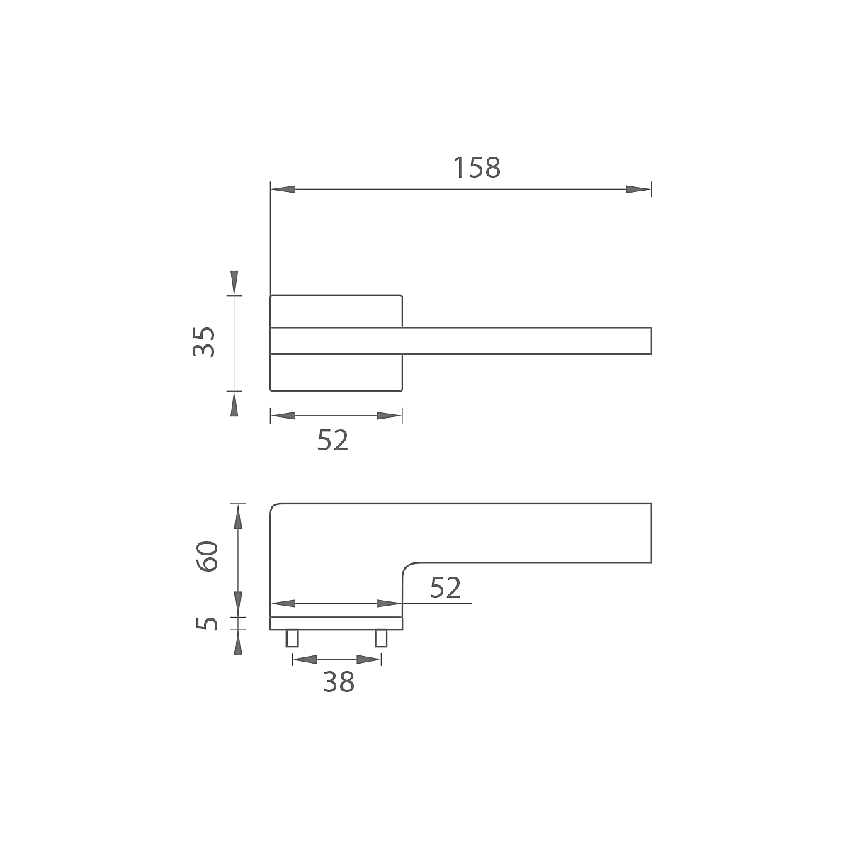 Rozeta za unutarnja vrata s pravokutnom rozetom izrađena je od visokokvalitetnih materijala - zamaka i površinski je obrađena. Rozeta ima dimenzije 52 mm x 35 mm i debljinu od samo 5 mm. Sama rozeta je dio dizajna ručke.
