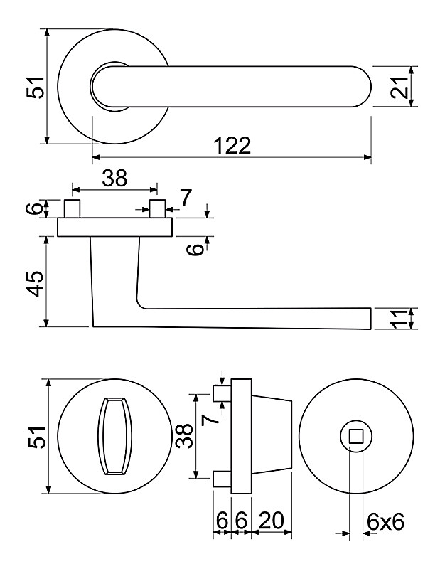 - U WC verziji, paket uključuje kvadrat 6 x 6 mm i reduktor 6/8 mm.