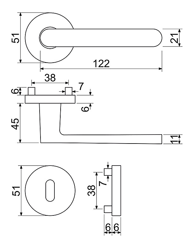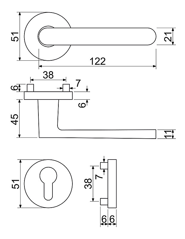 Aluminijski okovi na okruglim rozetama s povratnom oprugom ručke