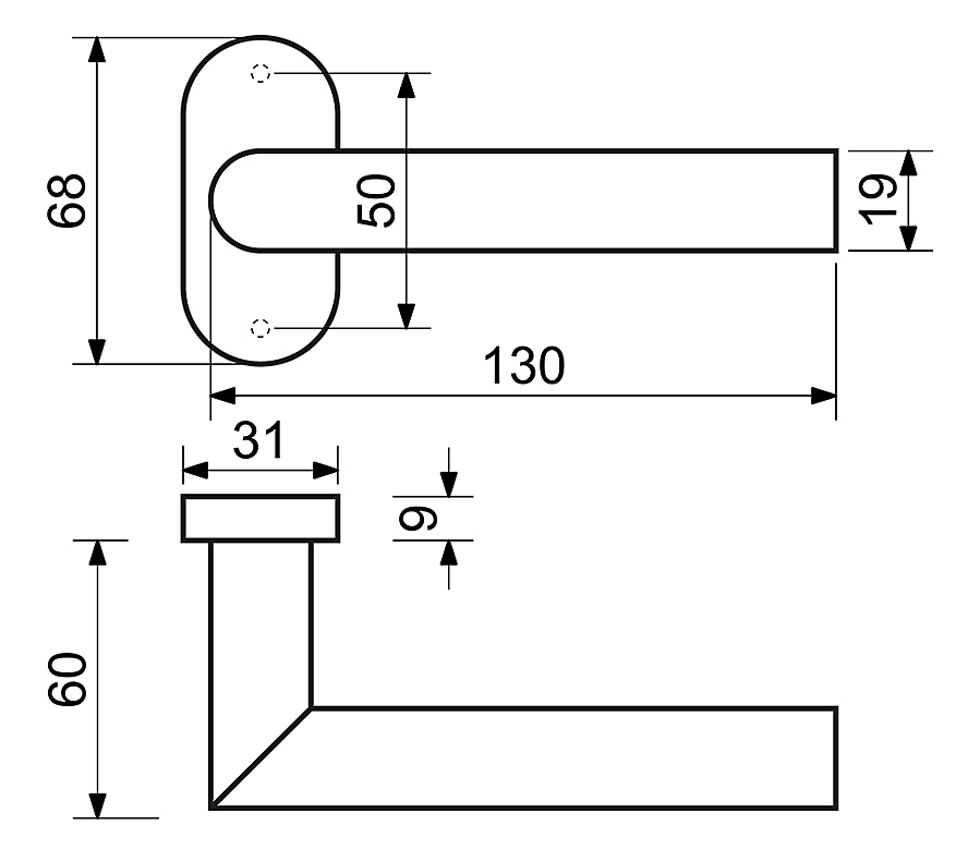 Okov od nehrđajućeg čelika na ovalnim rozetama s povratnom oprugom ručke