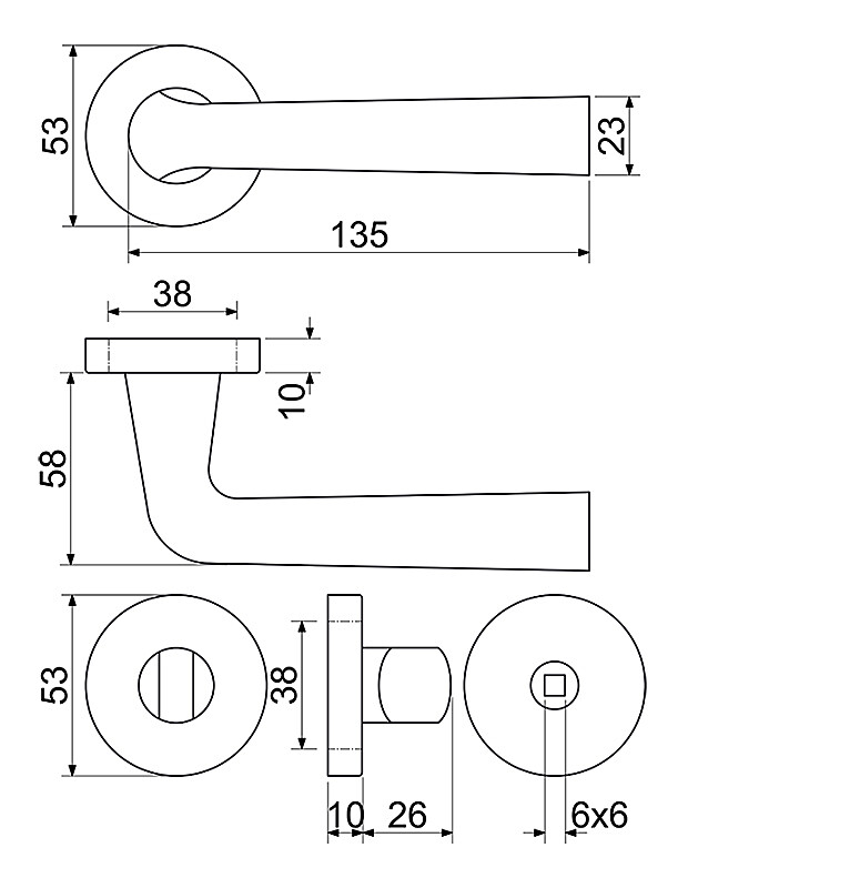 - U WC verziji, paket uključuje kvadrat 6x6 mm i reduktor 6/8 mm.
