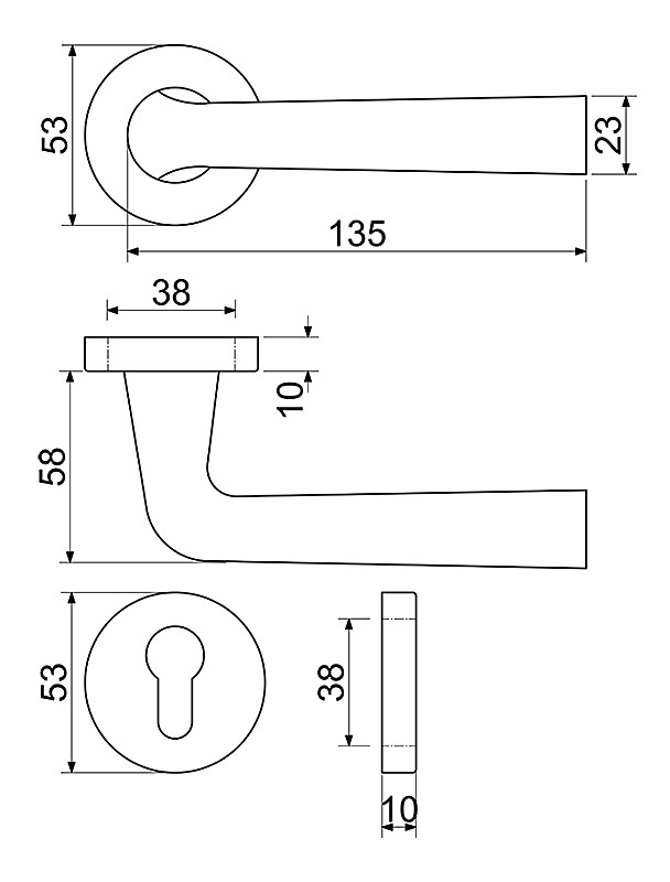 Ekonomični čelični okovi na okruglim rozetama s povratnom oprugom ručke