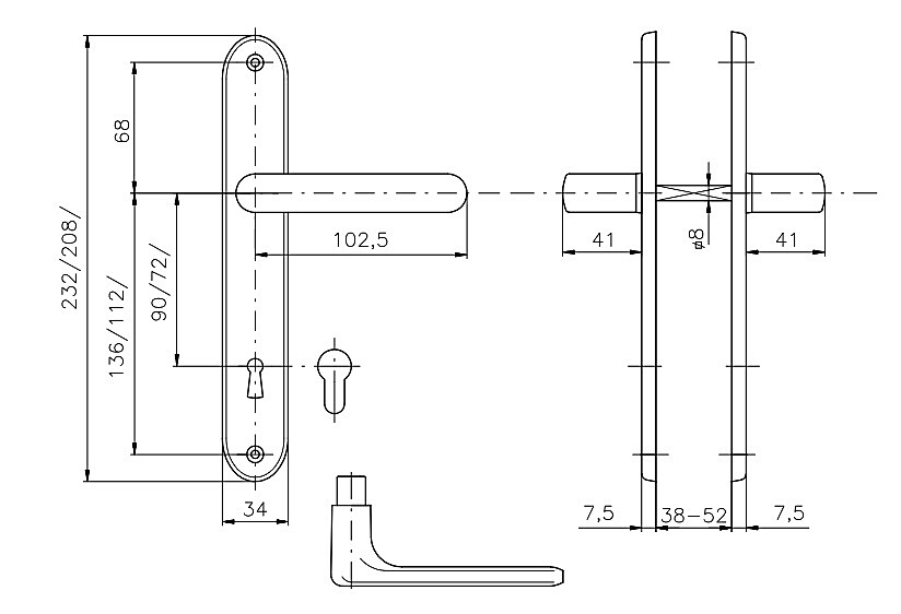 | Vrsta rupe - varijanta | Otvor za cilindrični umetak PZ, Otvor za obični BB ključ, WC ključ |