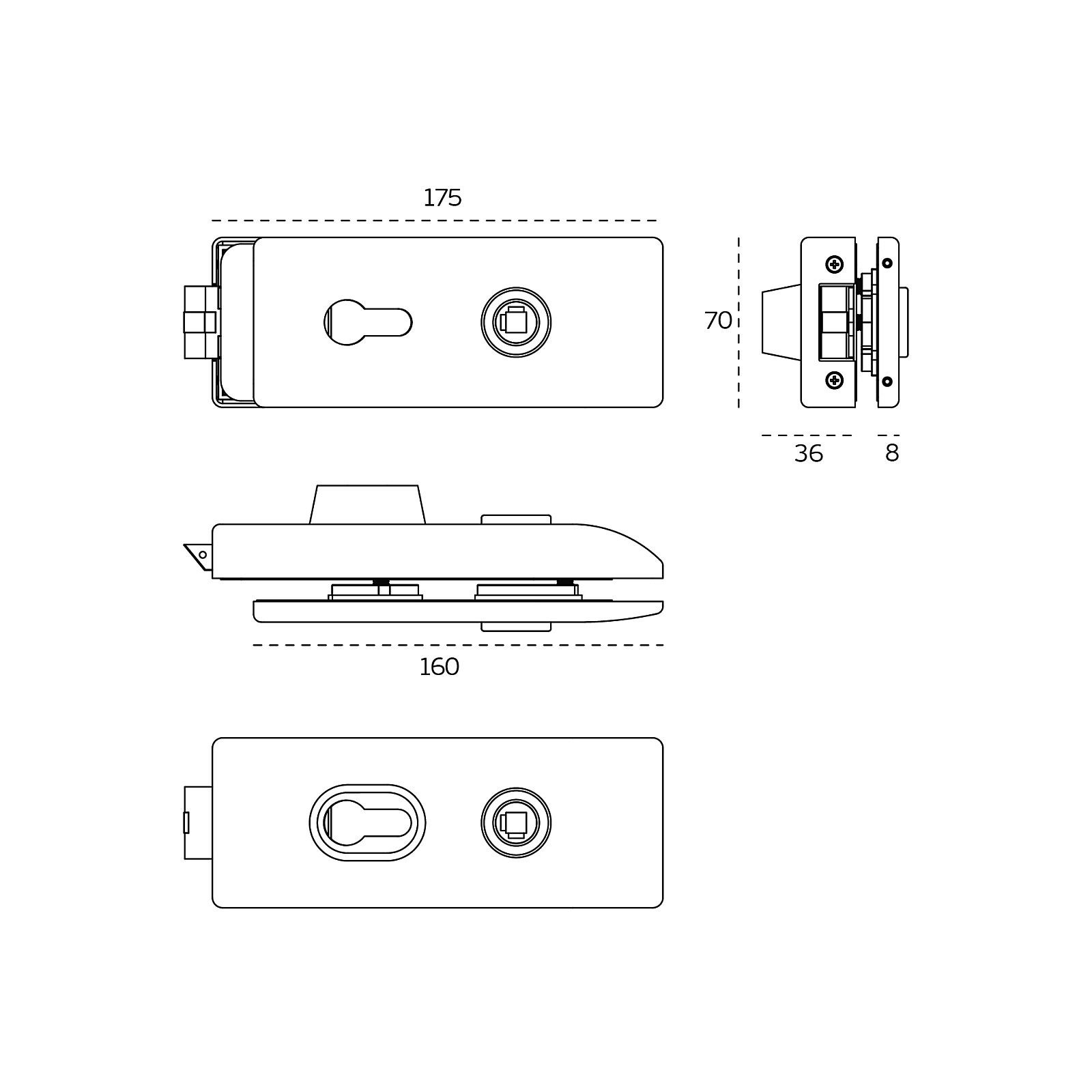 Okovi za staklena vrata izrađeni su od visokokvalitetnog nehrđajućeg čelika, poznatog kao inox, te su površinski obrađeni. Okov ima dimenzije 175 mm x 70 mm.