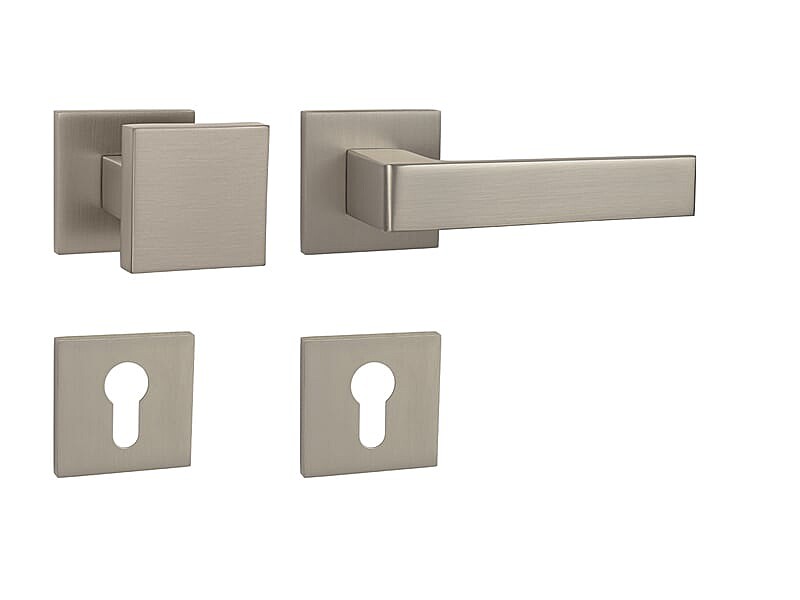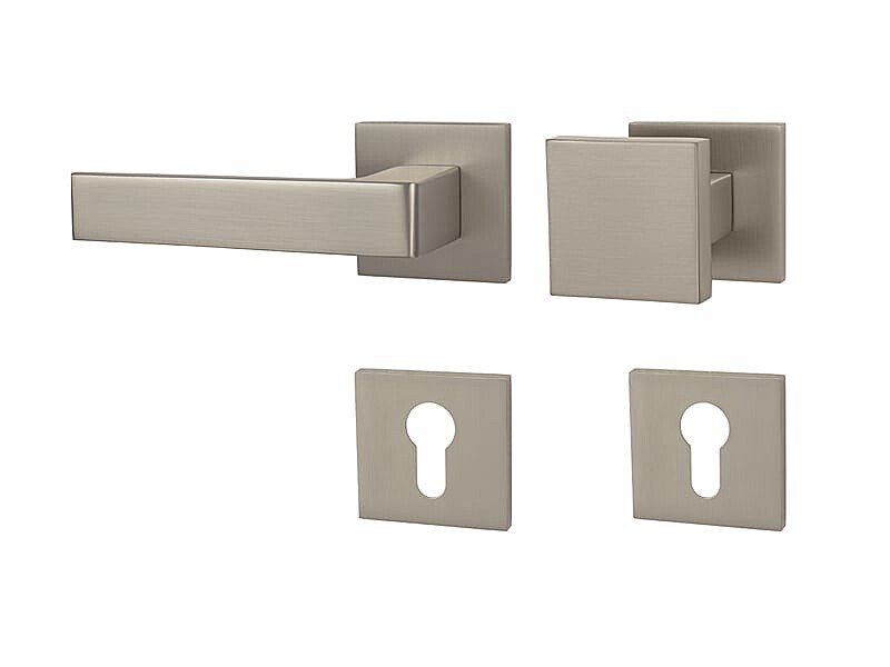 Rozetna kvaka za sobna vrata s četvrtastom rozetom izrađena je od visokokvalitetnog materijala - zamaka i površinski je obrađena. Rozeta je dimenzija 53 mm x 53 mm i debljine 6 mm.