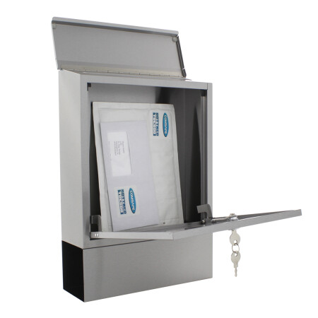 Poštanski sandučić LIBRO ima gornji ulaz s krovom koji štiti pošiljke od kiše i prljavštine. Izrađen je od visokokvalitetnog nehrđajućeg čelika i otporan je na nepovoljne vremenske uvjete. Svoju poštu možete jednostavno podići zahvaljujući ulaznim vratima koja se mogu spustiti. U gornjem desnom dijelu sandučića postoji prostor za pločicu s imenom. Poštanski sandučić nadopunjuje četvrtasta kutija za novine i časopise na dnu. Paket uključuje i materijal za montažu, pomoću kojeg kutiju možete jednostavno montirati na zid kroz rupe na stražnjoj strani.
