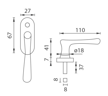 Polusvjetlo za drveni prozor s ovalnom rozetom izrađeno je od visokokvalitetnog materijala - mesinga i površinski je obrađeno. Rozeta je dimenzija 27 mm x 67 mm i debljine 7 mm.