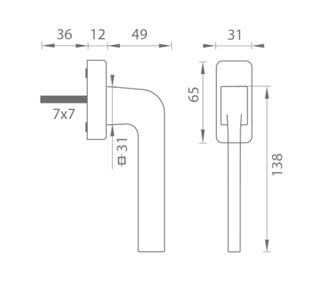 Kvaka za euro prozor s četvrtastom rozetom izrađena je od visokokvalitetnog materijala - zamaka i površinski je obrađena. Rozeta je dimenzija 31 mm x 65 mm i debljine 11 mm.