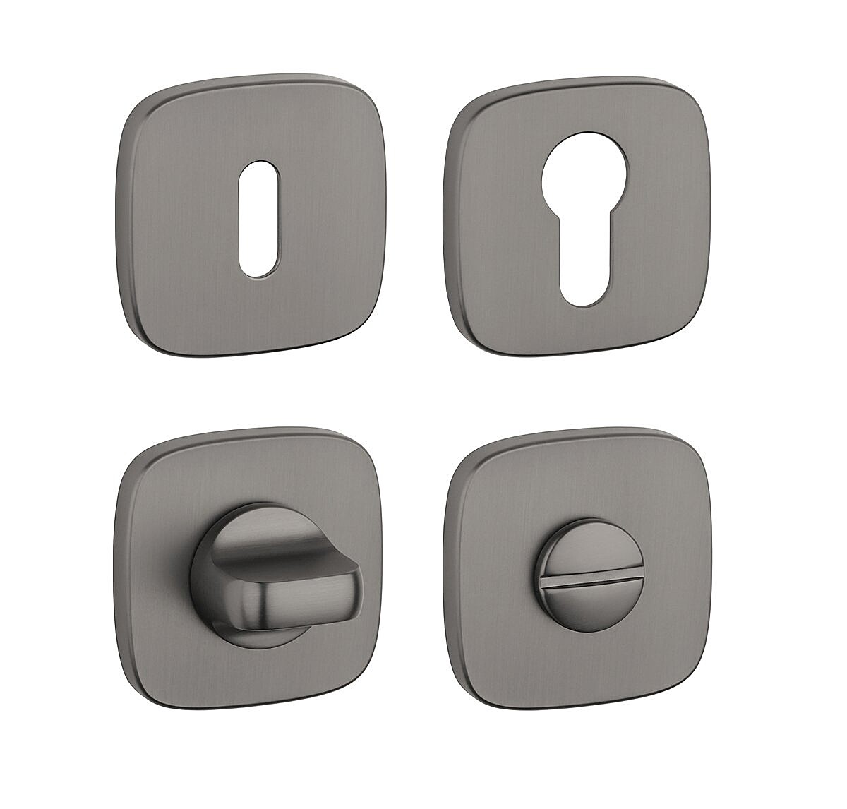 Dizajn: ovalni otvor za unutarnji ključ (BB), otvor za cilindar (PZ), WC set s ugrađenim ključem. Paket sadrži 2 komada rozeta (par), a WC rozete su pakirane kao set.
