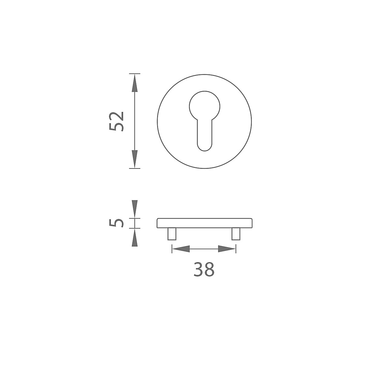 Okrugla rozeta izrađena je od visokokvalitetnih materijala - zamaka i površinski je obrađena. Rozeta ima promjer 52 mm, debljinu 5 mm i ovalni otvor za unutarnji ključ (BB), otvor za uložak cilindra (PZ), WC set s ugrađenim ključem.