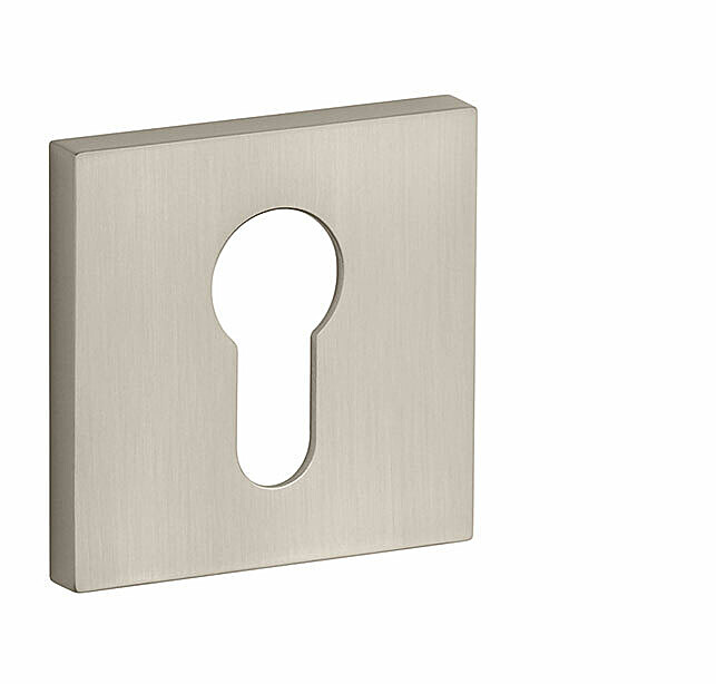 Četvrtasta rozeta izrađena je od visokokvalitetnog materijala - zamaka i površinski je obrađena. Rozeta je dimenzija 52x52 mm, debljine 7 mm i ima ovalni otvor za unutarnji ključ (BB), otvor za cilindarski uložak (PZ), WC set sa ugrađenim ključem. Paket sadrži 2 komada rozeta (par) a wc rozete su u paketu kao set.