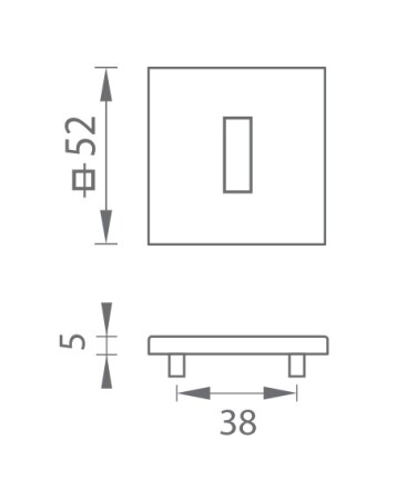 Četvrtasta rozeta izrađena je od visokokvalitetnog materijala - mesinga i površinski je obrađena. Rozeta je dimenzija 52 mm x 52 mm, debljine samo 5 mm i kvadratnog otvora za unutarnji ključ (BBQ), otvor za cilindarski umetak (PZ) ili WC garnituru s ugrađenim ključem. Paket sadrži 2 komada rozeta (par) a wc rozete su u paketu kao set. Rozeta sadrži patentirani TUPAI mehanizam s najlonsko-metalnom podlogom s izbočinama, što olakšava montažu poklopca rozete i osigurava stabilnu fiksaciju bez mogućnosti slobodnog pomicanja poklopca.