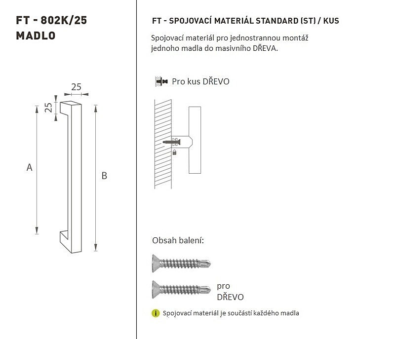 Kvaka za vrata izrađena je od visokokvalitetnog nehrđajućeg čelika, poznatog kao nehrđajući čelik, i površinski je obrađena. Profil ručke je 25 x 25 mm. UNIVERSAL (UN) set sadrži pričvršćivače za dvostranu ugradnju dviju ručki u drvu, PVC-u, AL-u, staklu.