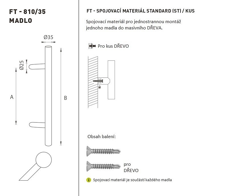 Kvaka je izrađena od visokokvalitetnog nehrđajućeg čelika, poznatijeg kao inox, te je površinski obrađena. Profil drške je 35 mm. Ručka uključuje 6 x 45 mm vijaka.