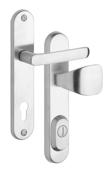 Sigurnosni okov isporučuje se bez cilindričnog uloška i namijenjen je za ulazna vrata koja se otvaraju prema unutra i prema van , debljina vrata 38 - 55 mm, zatim u koracima od 15 mm do debljine vrata 100 mm, pričvršćivači.