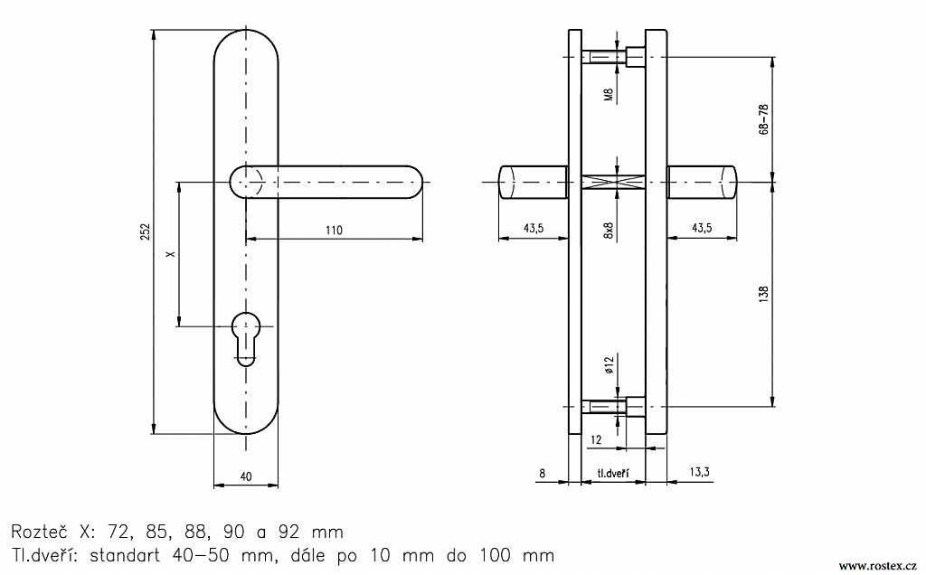 | Razmak | 72 mm, 90 mm, 92 mm |