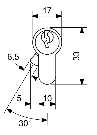 Sigurnosni 6-pinski cilindar s prolaznom spojnicom "BSZ", zaštita od bušenja, udaranja i ravnanja (novi sigurniji profil cilindra) - 30/35.BSZ