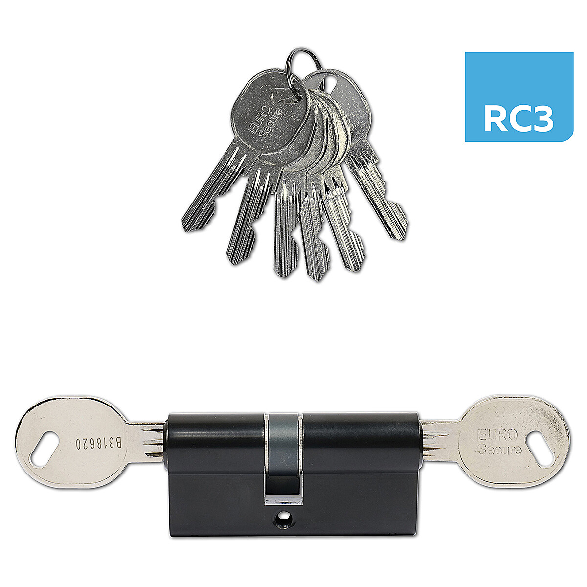 - Sigurnosni 6-bitni cilindar s otpornošću na bušenje i nerazornom dinamičkom metodom (tzv. bumping) te s spojkom kroz rupu (BSZ) = cilindar se može otključati čak i s ključem umetnutim s druge strane.