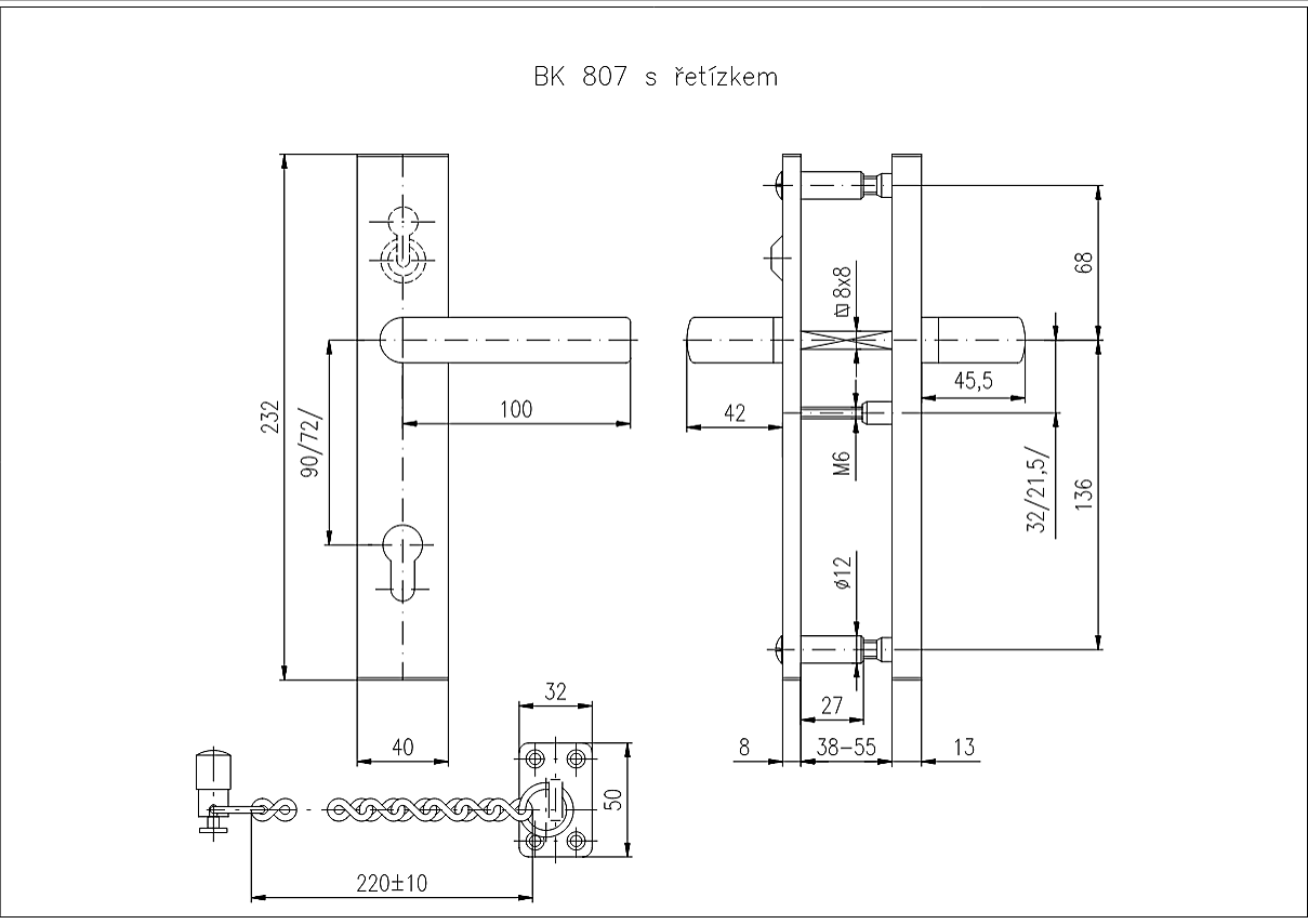 Sigurnosni okovi ROSTEX BK 807 s lancem (KROMIRANI INOX)