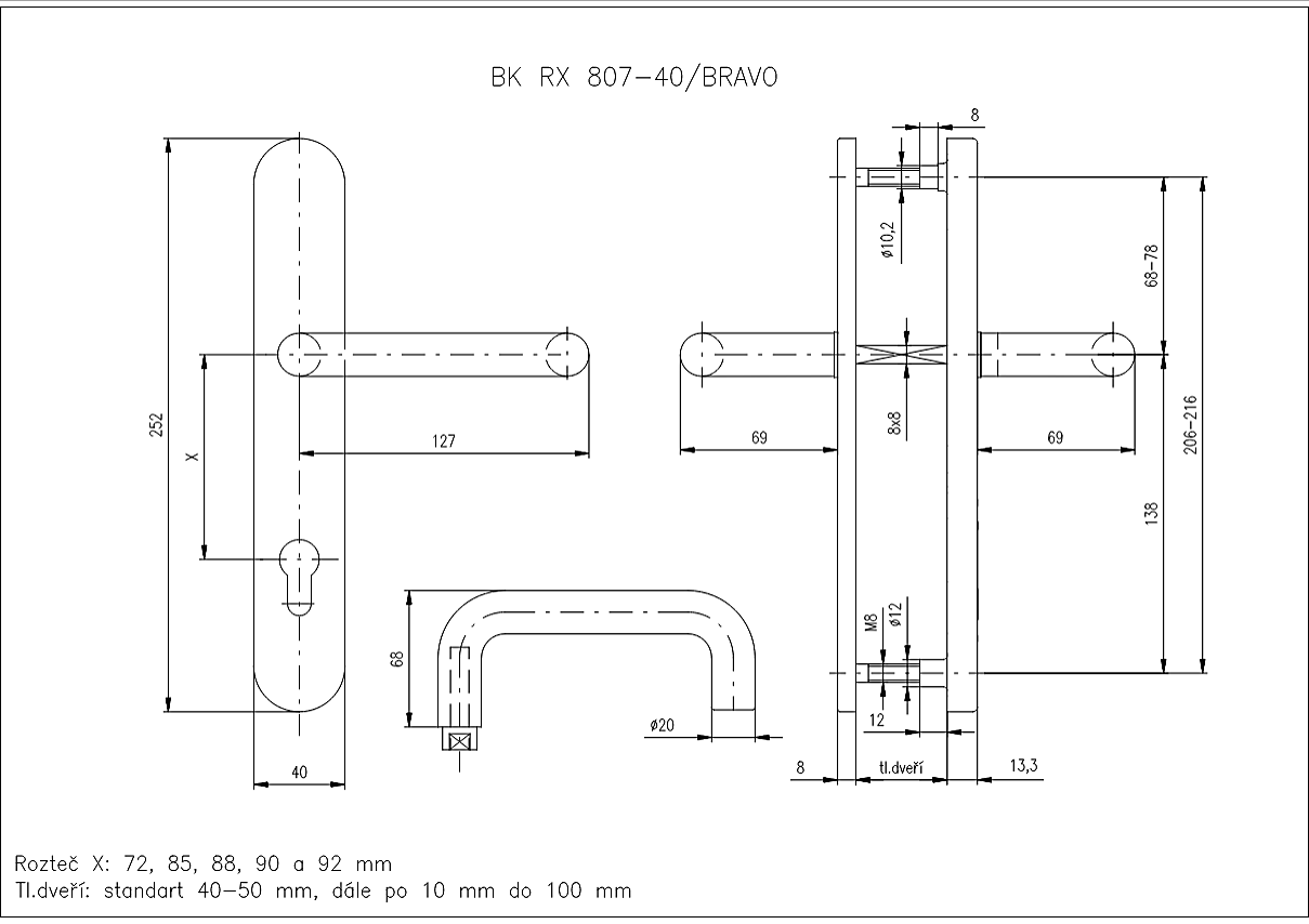 | Razmak | 72 mm, 90 mm, 92 mm |