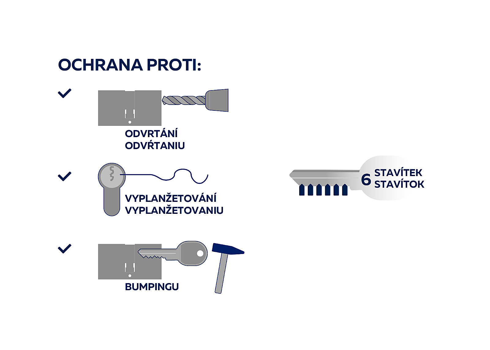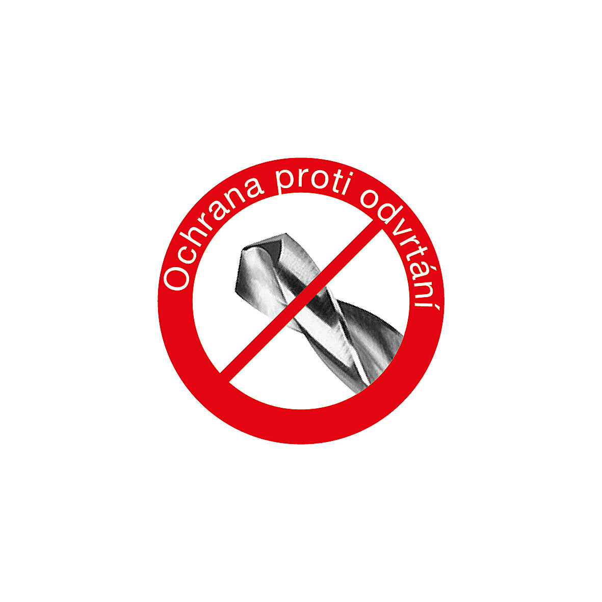 - Zaštita od bušenja sa 6 elemenata od kaljenog čelika. Sastoji se od 5 klinova i 1 zatvarača.