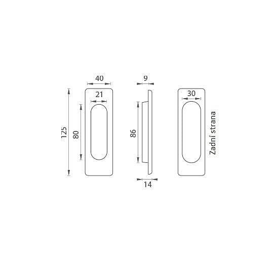 Školjka za klizna vrata četvrtasta bez otvora MP - 3663AC (ANT - antracit)