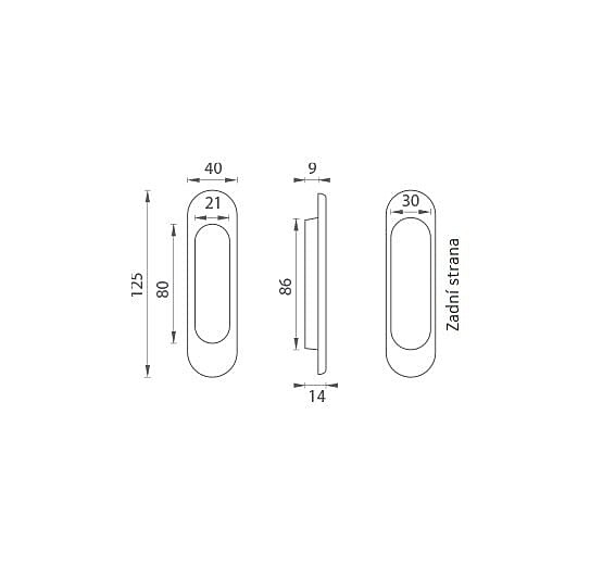 Školjka za klizna vrata MP OVAL FT 3665 AC - bez rupe (OCS - Brušeni krom)