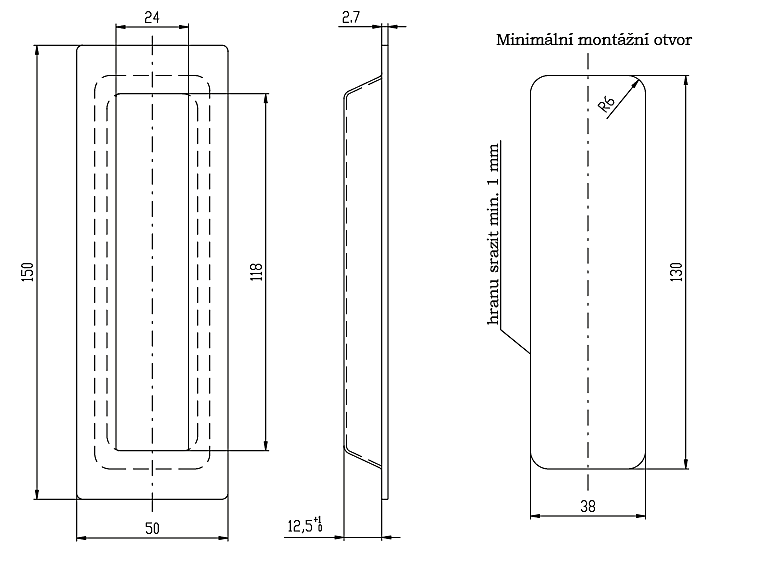 Školjke za klizna vrata ROSTEX kvadratne 50x150mm (MAT CRNA)